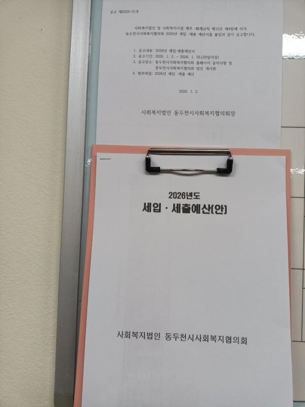 동두천시사회복지협의회 2026년 세입 ·세출 예산서를 붙임과 같이 공고합니다.