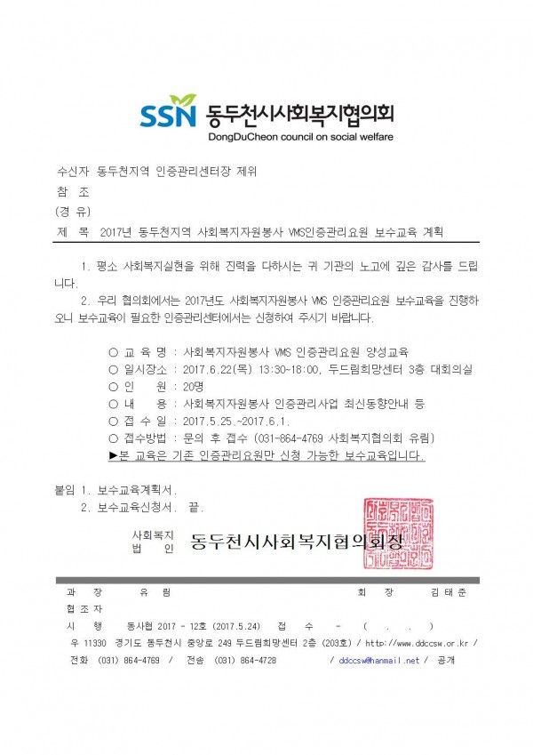 2017년 사회복지자원봉사VMS인증관리요원 보수교육 안내