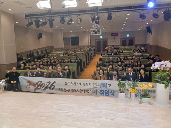 2026년 동두천시사회복지계 인사회 및 회장이취임식 사진 페이지 정보 작성자 동두천시사회복지협의회 작성일26-03-16 18:28 조회8회 댓글0건 관련링크 이전글 다음글 목록 본문 . 댓글목록 등록된 댓글이 없습니다. 이전글 다음글 목록