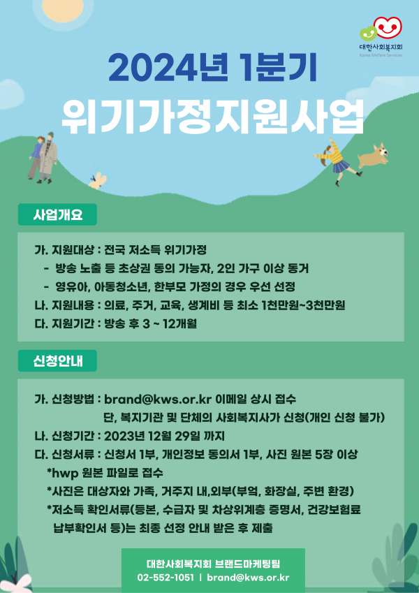 2024년 1분기 위기가정 지원사업 신청 안내 (~12.29)