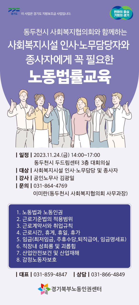 경기북부노동인권센터와 동두천시 사회복지협의회가 함께하는 노동법률 무료교육